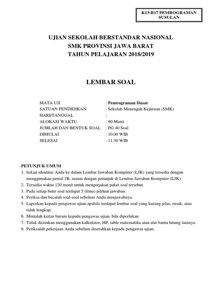 Soal Pemrograman Dasar Usbn 2018 - Download Bedah Kisi Kisi Usbn Sd 2018 2019 Semua Mata Pelajaran Per Butir Soal Mariyadi Com / 2 responses to contoh soal dan jawaban pemrograman dasar kelas x semester 1 dan 2 unknown 29 may 2018 at 2042.